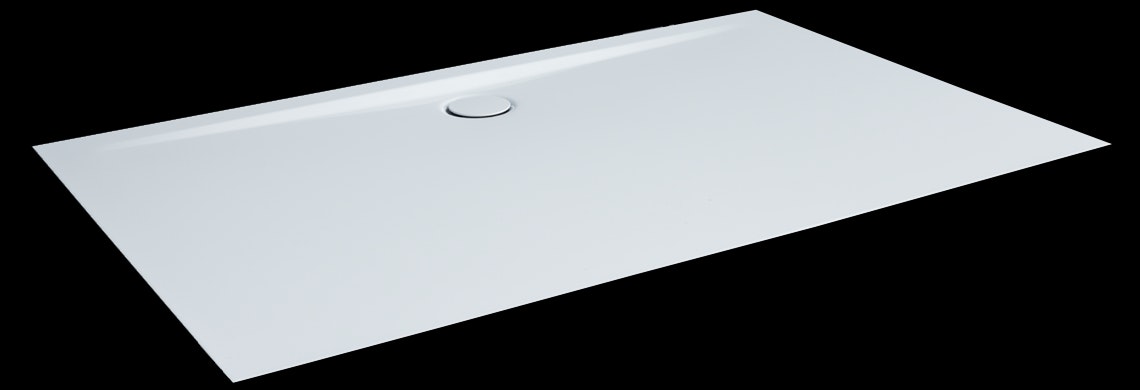 Płaski brodzik prysznicowy o bardzo nowoczesnym designie, z odpływem umieszczonym na środku dłuższego boku. Obszerna, jednorodna powierzchnia do stania. Może być zestawiony z chromowaną pokrywą odpływu lub z emaliowaną pokrywą odpływu w kolorze brodzika (sprzedawaną osobno).