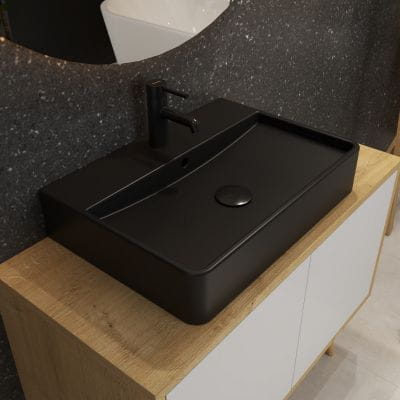 Oltens Duve umywalka 59x43,5 cm prostokątna ścienna-nablatowa czarna 41300300