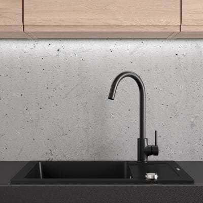 Zlewozmywak wykonany jest z trwałego materiału, odpornego na plamy, zarysowania i na wysoką temperaturą (nawet do 280 °C).