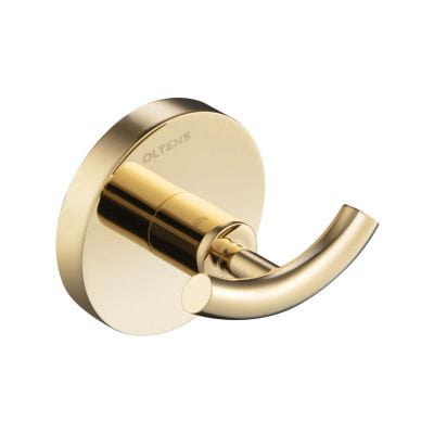 Wieszaki, haczyki i drążki na ręczniki marki Oltens zostały wykonane z mosiądzu pokrytego warstwą chromu a następnie pokryte złotą farbą metodą PVD, dzięki czemu produkty są bardzo trwałe, estetyczne i eleganckie. Mocowanie do ściany zostało ukryte. W komplecie z każdym produktem odporny na korozję zestaw do mocowania.
