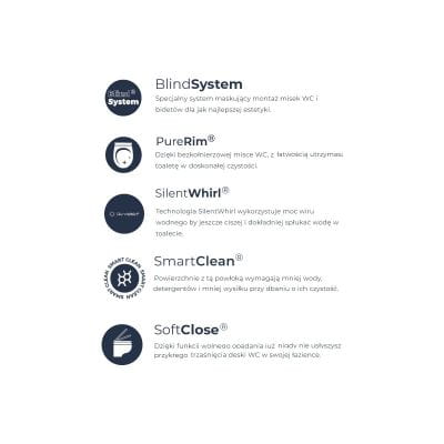 Oltens Jog Stille miska WC wisząca PureRim SmartClean spłukiwanie wirowe z deską wolnoopadającą biały połysk 42531000