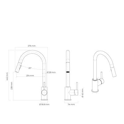 Oltens Litla bateria kuchenna stojąca z wyciąganą wylewką chrom 35204100