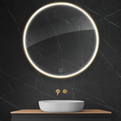 Oltens Nordlis lustro 100x100 cm okrągłe z oświetleniem z matą grzewczą złoty 64102800