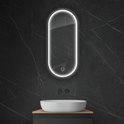 Oltens Nordlis lustro 40x90 cm owalne z oświetleniem z matą grzewczą czarny 64103300