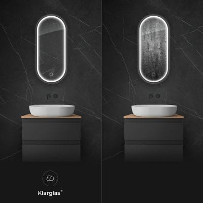 Technologia Klarglas - lustra Oltens NordlisLustra Oltens Nordlis wyposażone są w matę grzewczą. Mata grzewcza jest obsługiwana przez krótkie naciśnięcie przycisku dotykowego w lustrze. To również włącza oświetlenie. Technologia Klarglas zapobiega kondensacji na lustrze i zawsze możesz zobaczyć swoje odbicie nawet po prysznicu lub kąpieli.