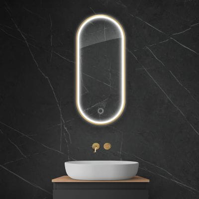 Oltens Nordlis lustro 40x90 cm owalne z oświetleniem z matą grzewczą złoty 64103800