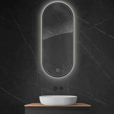 Oltens Nordlis lustro 50x120 cm owalne z oświetleniem z matą grzewczą czarny 64114300