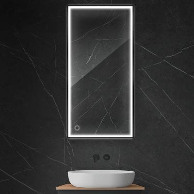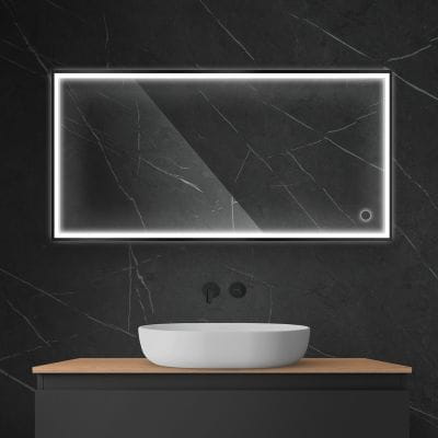 Oltens Nordlis lustro 60x120 cm prostokątne z oświetleniem z matą grzewczą czarny 64107300