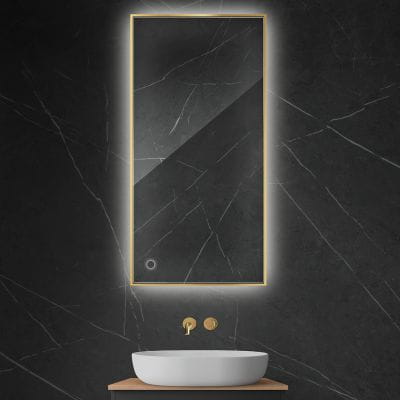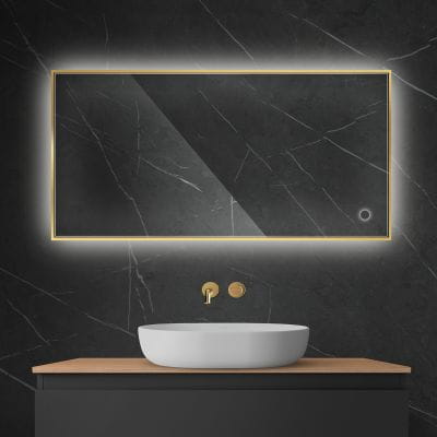 Oltens Nordlis lustro 60x120 cm prostokątne z oświetleniem z matą grzewczą złoty 64112800