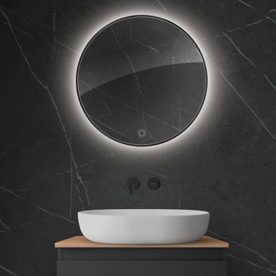 Oltens Nordlis lustro 60x60 cm okrągłe z oświetleniem z matą grzewczą czarny 64108300