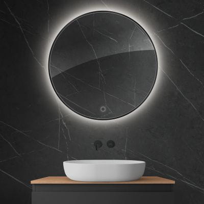 Oltens Nordlis lustro 80x80 cm okrągłe z oświetleniem z matą grzewczą czarny 64109300