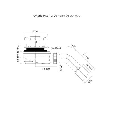 Oltens Pite Turbo syfon do brodzika 90 mm plastikowy czarny mat 08001300