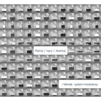 Planuj/Łącz/Aranżuj. Miksuj i dopasujRazem czy osobno? Takie rozwiązania zawsze sprawdzają się znakomicie. Marka Oltens projektując rozwiązania tworzy otwarte systemy do kompleksowego urządzania łazienek. Dlatego kolekcja mebli modułowych Vernal to proste rozwiązania, które nigdy się nie nudzą. Aby stworzyć swoją ulubioną kompozycję można wybierać spośród korpusów i blatów w kilku kolorach, różnych wysokościach i szerokościach.