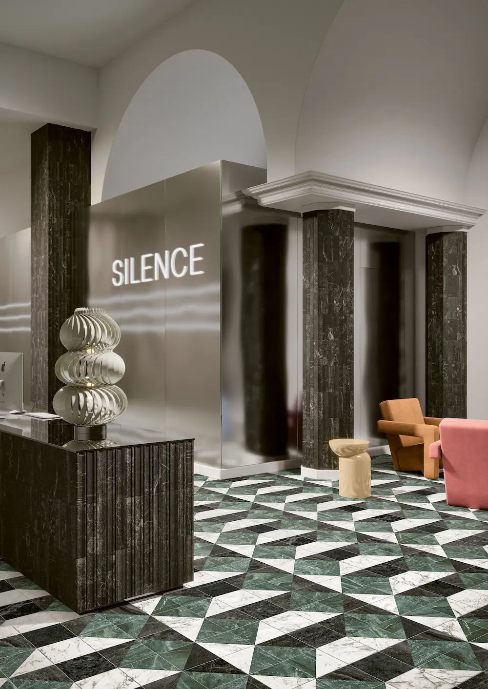 41zero42 Dandy Flag Green-Black 18,6x18,6 – nowoczesne płytki gresowe z geometrycznym wzorem