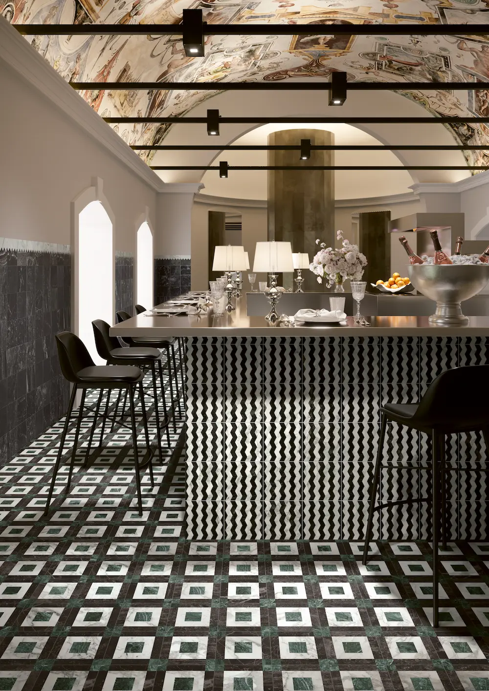 Płytki gresowe Dandy Ribbon Black-White 18,6x18,6 wyróżniają się subtelnym szlaczkowym wzorem w kontrastujących odcieniach czerni i bieli. Produkcja we Włoszech zapewnia nie tylko najwyższą jakość, ale również doskonałe dopasowanie do pozostałych elementów kolekcji Dandy. Kompaktowy format i wyjątkowy design pozwalają na stworzenie aranżacji, które wniosą do wnętrz nowoczesny i elegancki akcent. Płytki te świetnie sprawdzą się zarówno na ścianach, jak i podłogach kuchni, łazienek, salonów oraz przestrzeni komercyjnych. Ze względu na kierunkowy wzór, płytki wymagają obracania podczas układania, aby uzyskać spójny efekt końcowy.