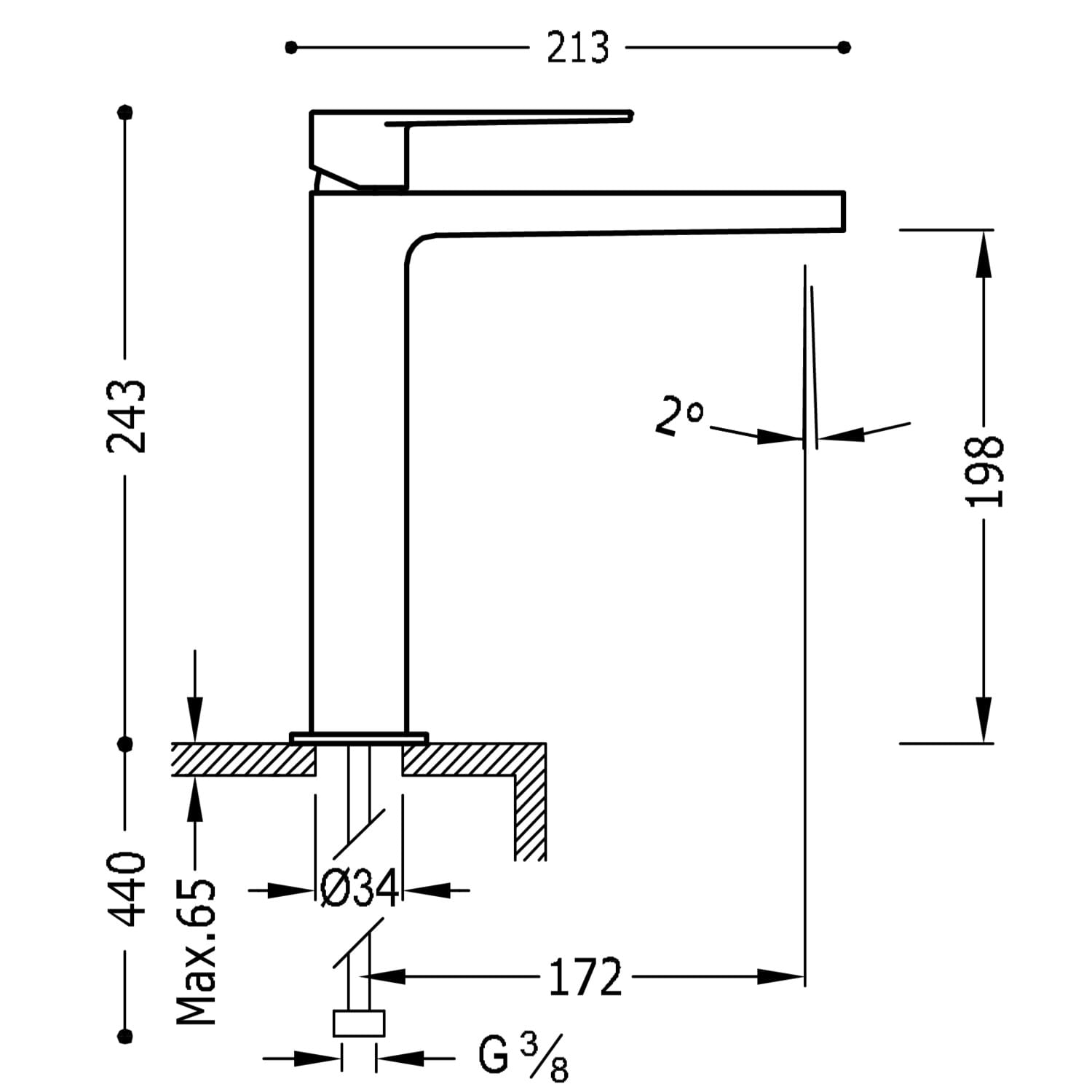 Tres Class bateria umywalkowa stojąca L chrom CLASS WYSOKA BATERIA JEDNOUCHWYTOWA UMYWALKOWA-20510303