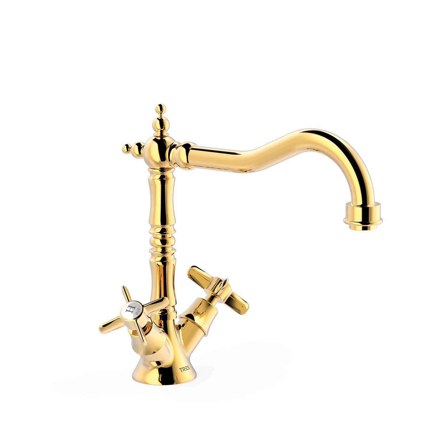 Tres Cocina Exclusive Bateria zlewozmywakowa stojąca Złoto 24K
