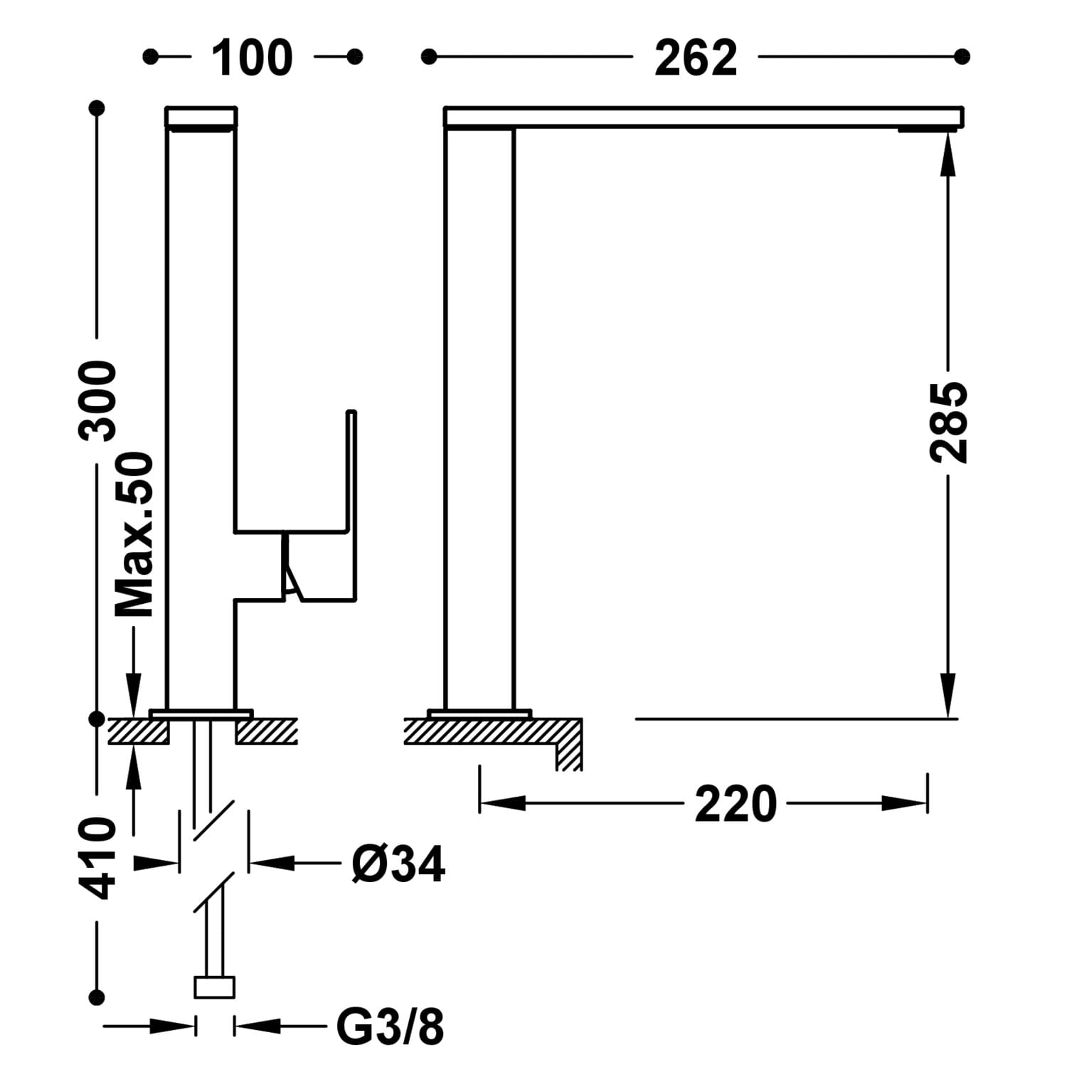 Tres Cuadro Exclusive Bateria umywalkowa CHROM CUADRO WYSOKA BATERIA JEDNOUCHWYTOWA UMYWALKOWA Z BOCZNĄ DŹWIGNIĄ-00648501 (id: 7357)