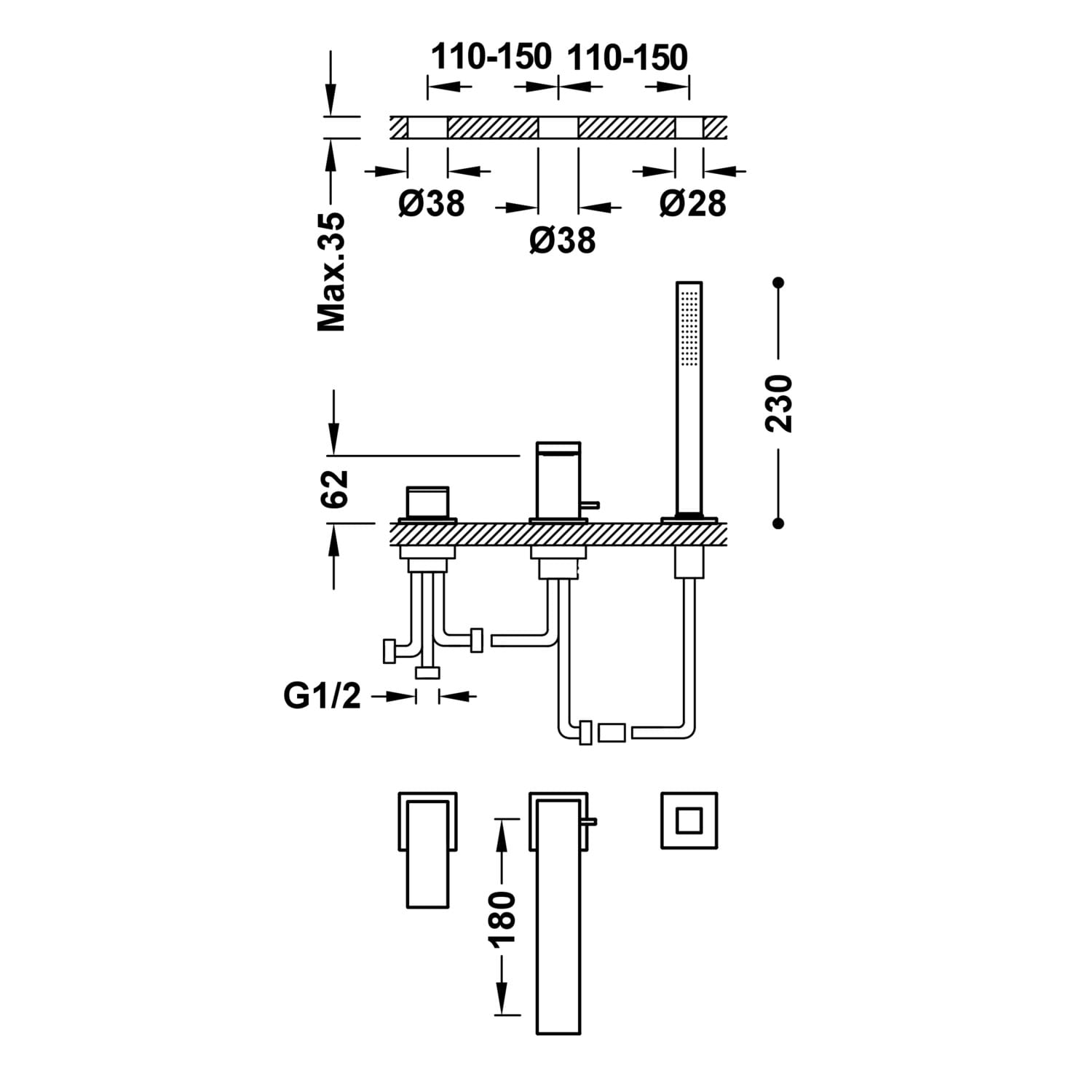 | Montaż baterii: | na rant/brzeg wanny/półkę | |