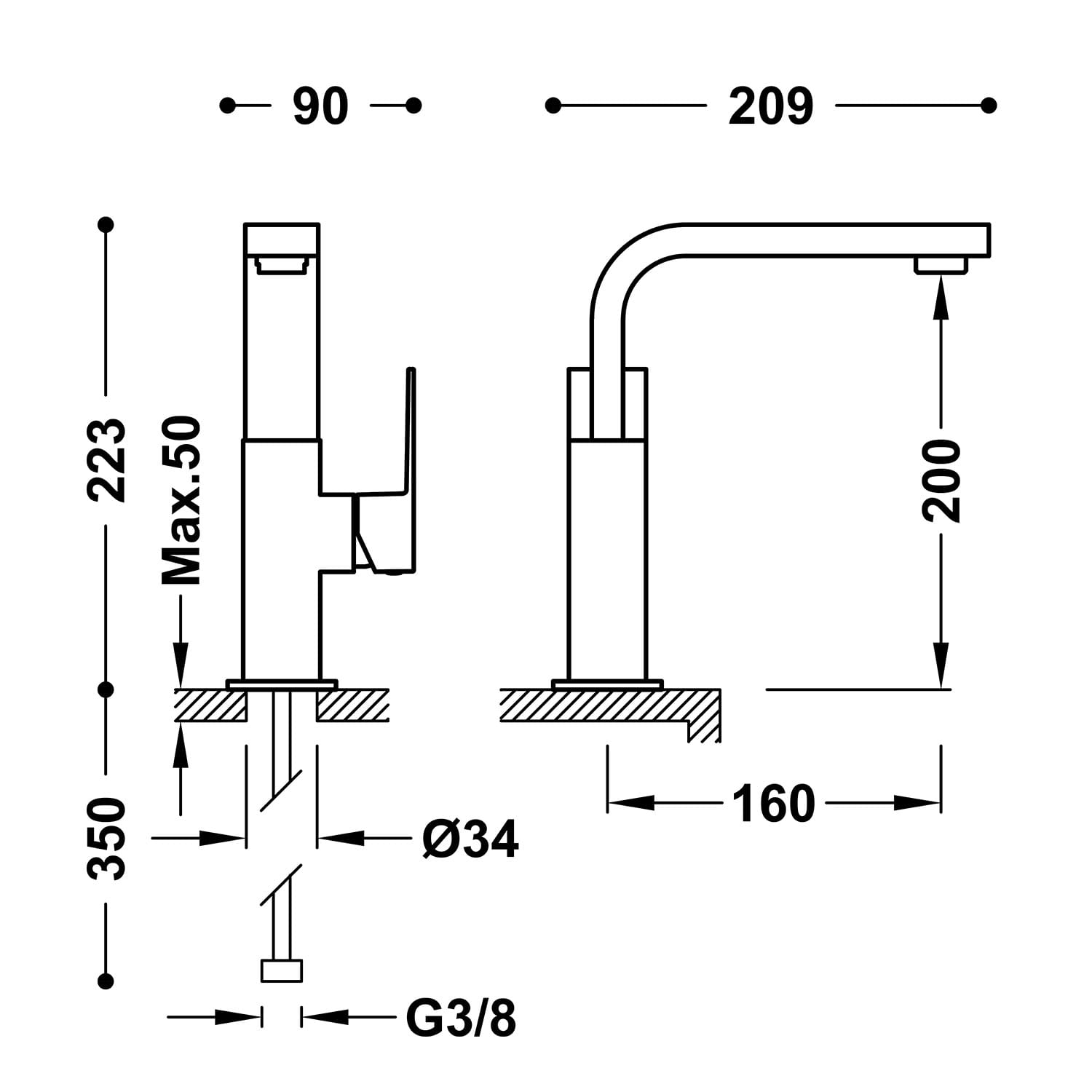 zasięg wylewki: 160 mm
