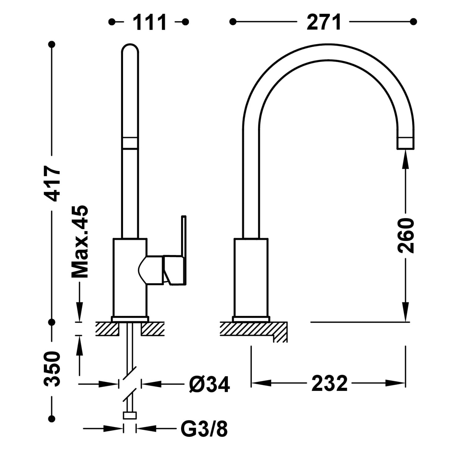 Opis Tres Lex-Tres bateria kuchenna, zlewozmywakowa stojąca chrom