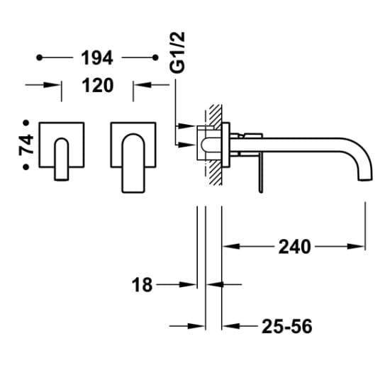 Opis Tres Loft Colors Bateria podtynkowa umywalkowa 24 cm Matowe złoto 24K