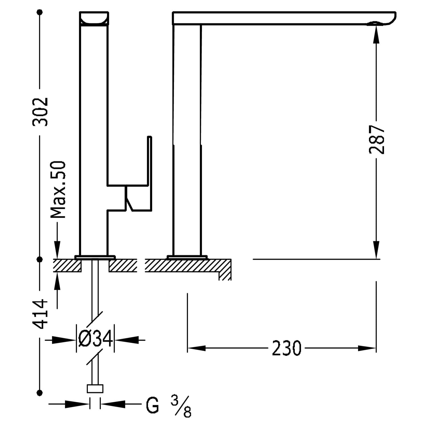 Tres Loft Colors Bateria umywalkowa CHROM LOFT Bateria jednouchwytowa XXL umywalkowa z boczną dźwignią-20020503
