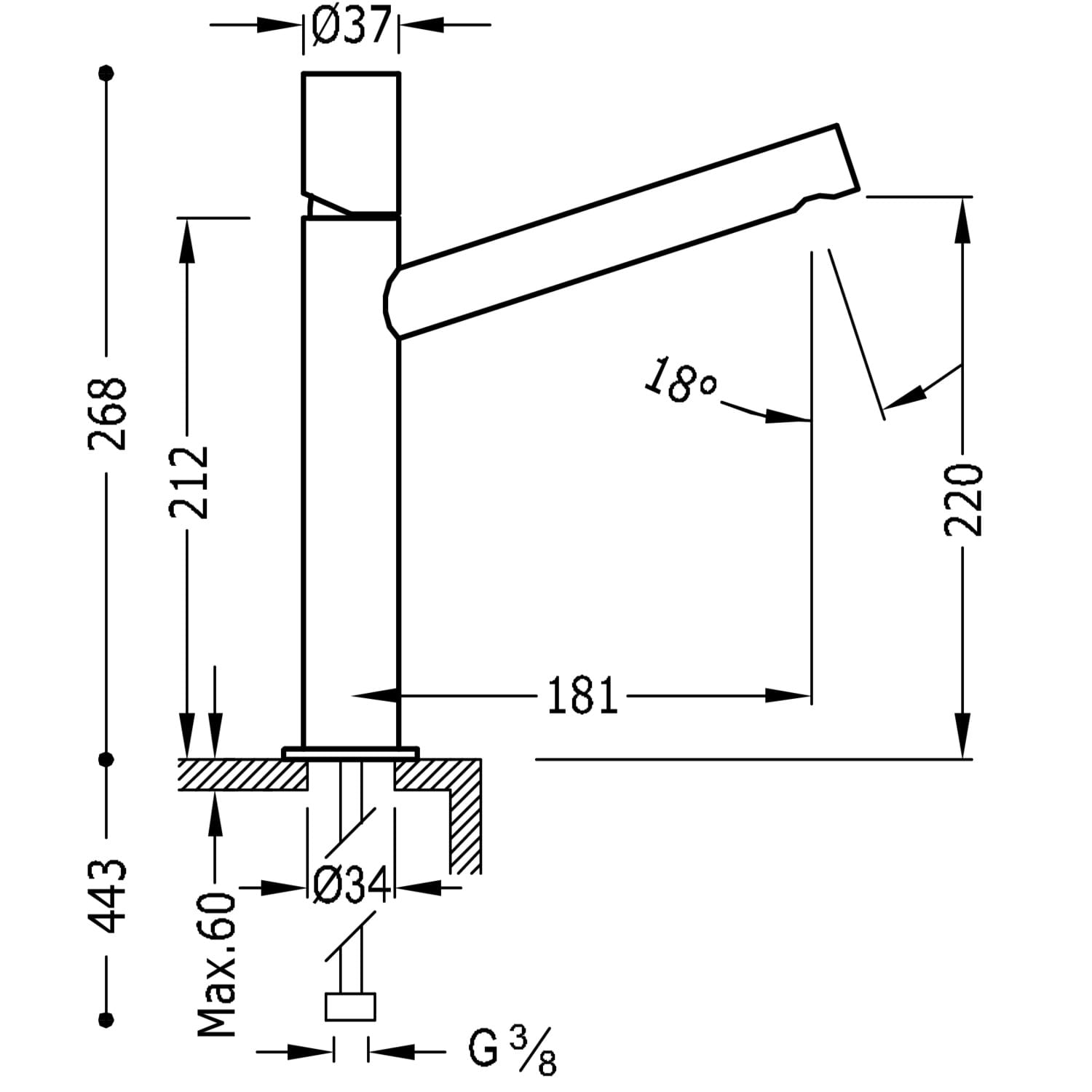 Bateria jednouchwytowa z pokrętłem w kolorze chromu od marki Tres z serii Max przeznaczona do umywalki. Wysokość produktu wynosi 26,8 cm. Bateria przeznaczona jest do montażu stojącego (sztorcowy).