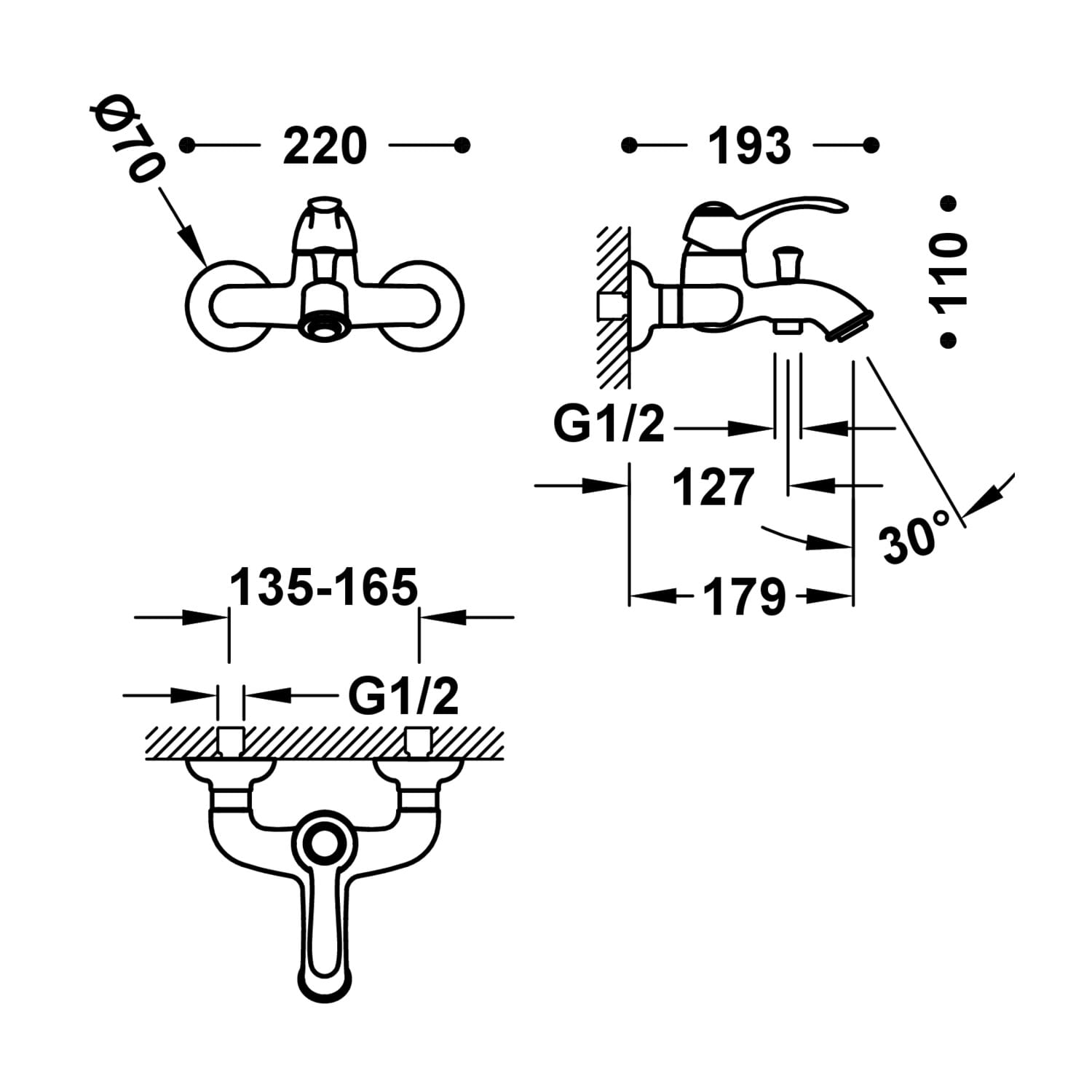 Opis Tres Mono-Clasic bateria wannowa natynkowa z zestawem punktowym złoty