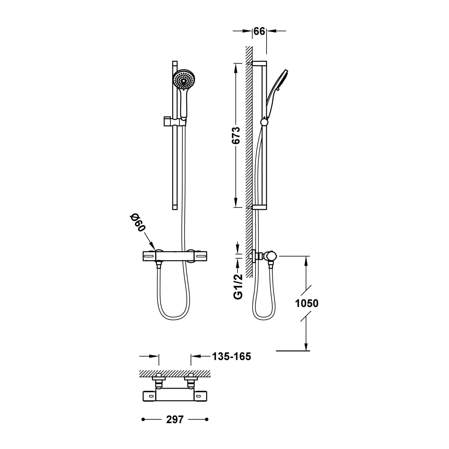 Tres Over-Wall Bateria prysznicowa termostatyczna z zestawem Chrom