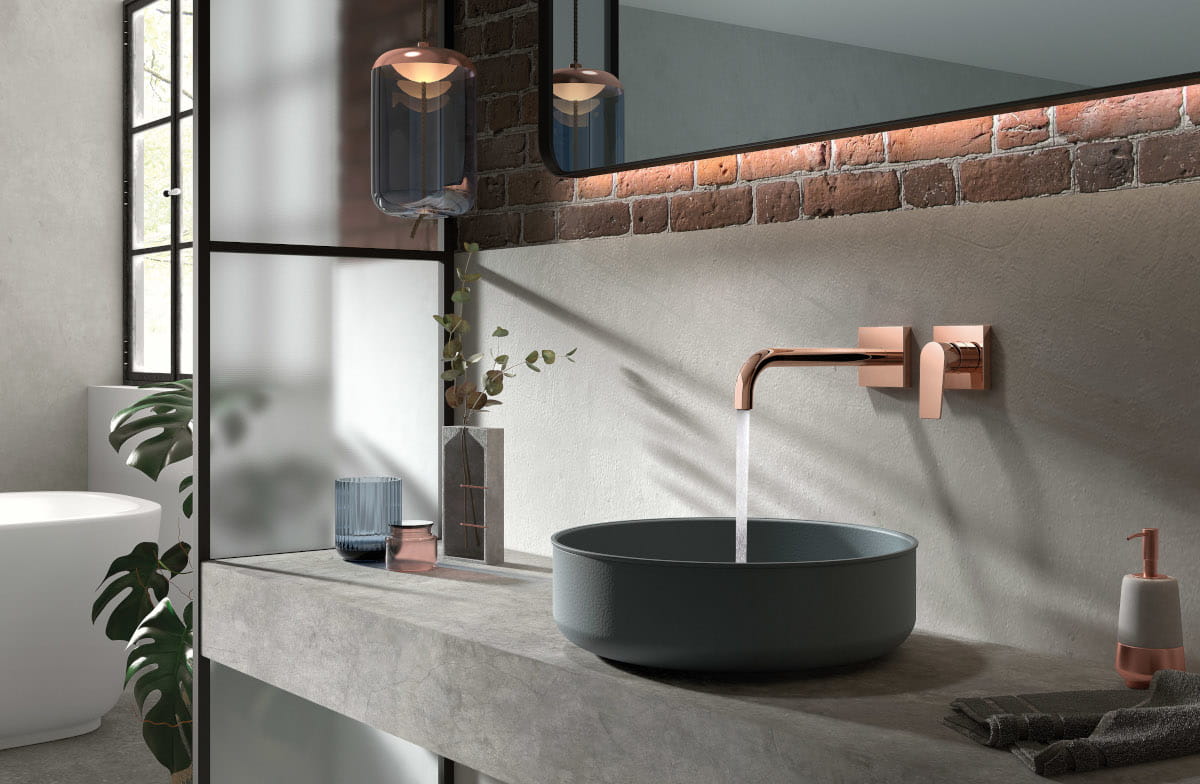 Tres Project Bateria podtynkowa umywalkowa 24-karatowe różowe złoto