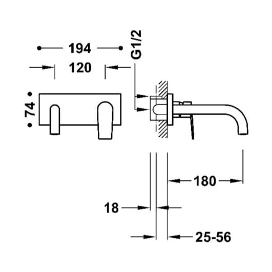 - zasięg wylewki: 180 mm