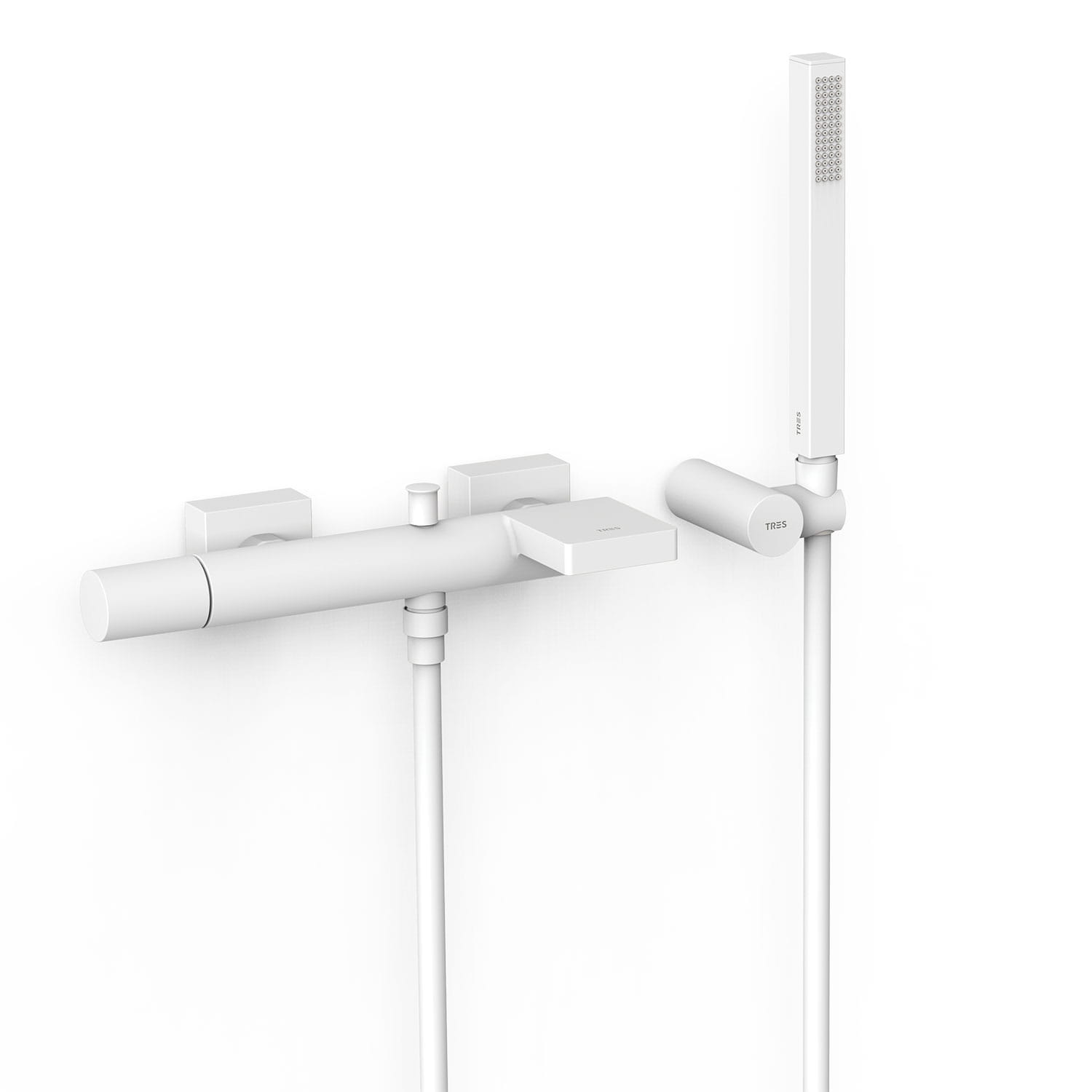 Tres Project bateria wannowa natynkowa kaskada z zestawem punktowym biały matowy