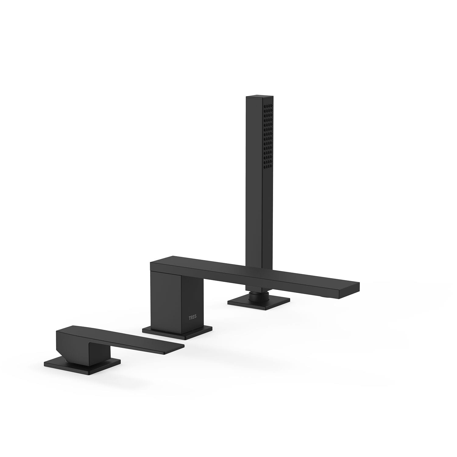 Opis Tres Slim Exclusive bateria wannowa stojąca 3-otworowa kompletna czarny matowy