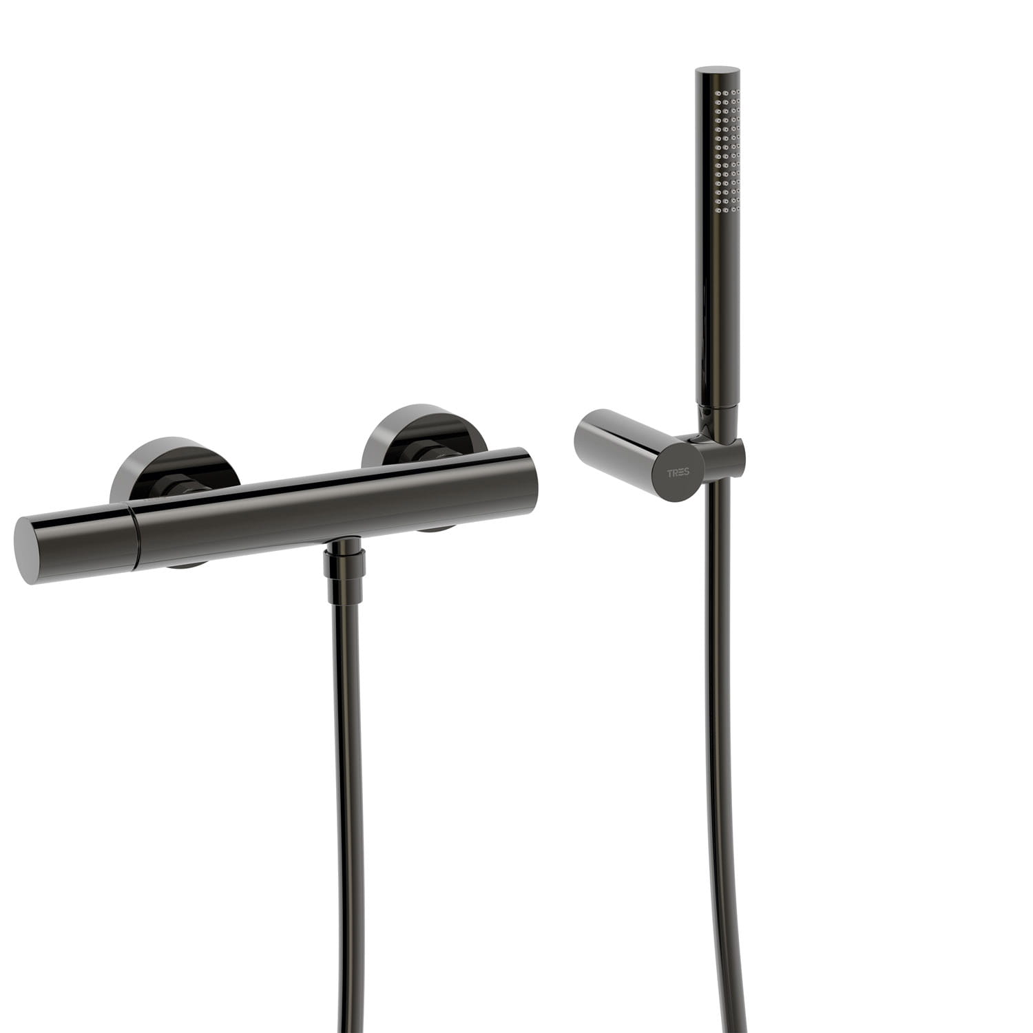 Tres Study Exclusive Bateria natryskowa Metalizowana czerńm- STUDY BATERIA JEDNOUCHWYTOWA ŚCIENNA PRYSZNICOWA-26116701KM